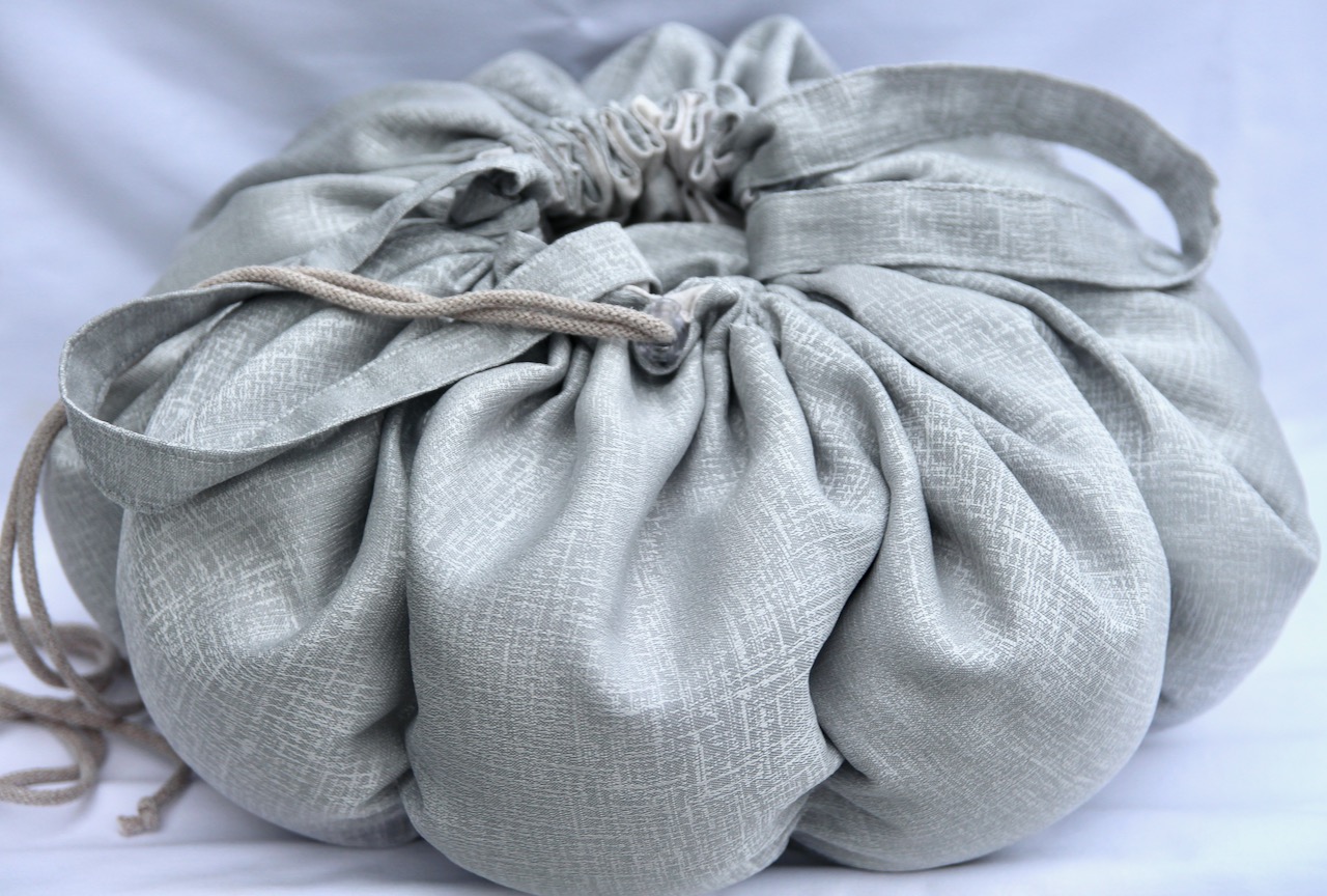 Das KOsCHino Kochkissen Edel Silbergrau Groß ist aus einem Baumwollstoff mit Struktur genäht, innen grauweiß gemustert, hier wurden zwei Stoffreste verarbeitet.